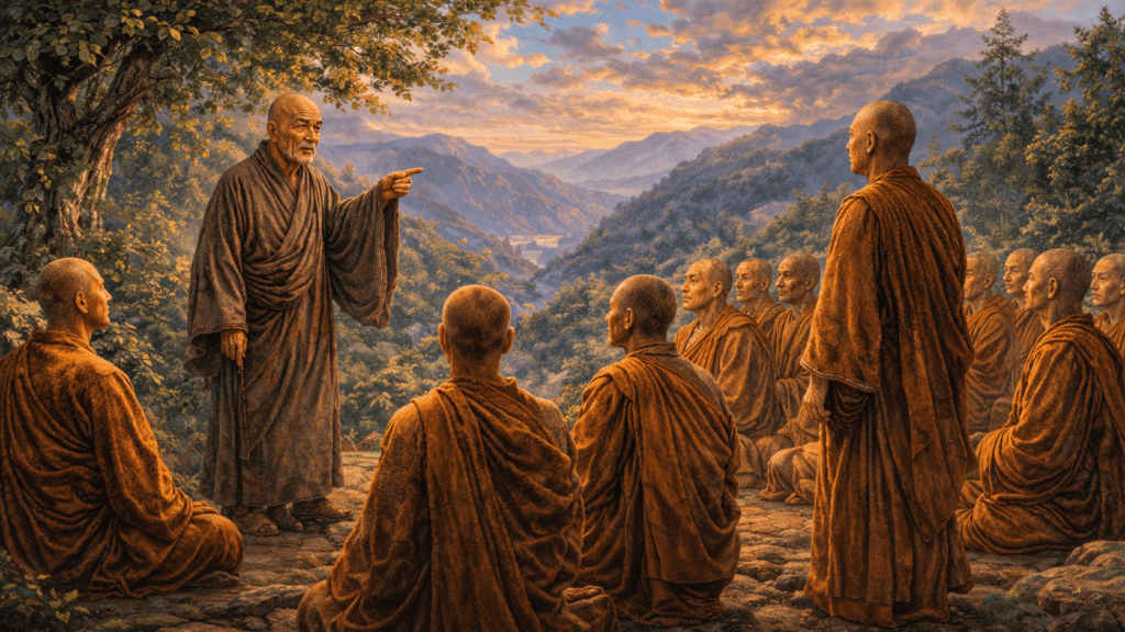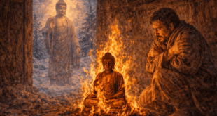 Живял някога един човек, който бил предан на Буда с цялото си сърце. Имал той прекрасна старинна дървена статуя на Учителя, истински шедьовър. Отношени – ето му към нея, било като към най-голямото съкровище. Веднъж, през една студена зимна нощ, човекът останал сам в сламената си колиба. Било много студено и той отчаяно треперел от студ. Изглеждало, че е настанал сетният му час. Нямало и съчка, за да си запали огън. В полунощ, когато почти се бил вкочанил, му се явил Буда и го попитал: „Защо не изгориш мен?“ Дървената статуя все така си стояла до стената. Човекът много се изплашил. ТоВа трябвало да е демон. „Какво каза? Да изгоря статуята на Буда? Никога! За нищо на света!“
