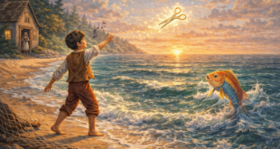 Везирът се изплашил и се отправил бавно към дома си с наведена глава и със сълзи на очи. Везирът имал милостив баща. Щом видял разплакания си син, той го попитал: