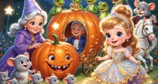 Кръстницата издълбала тиквата до кората, докоснала я с пръчицата си и тя на часа се превърнала в прекрасна каляска, цялата позлатена.
