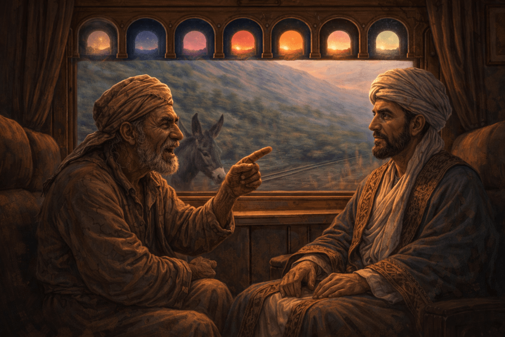 – Има такъв пример. Веднъж пътешествах с влак и ние преминахме през седем тунела. Срещу мен седеше селянин, който очевидно никога преди това не беше се возил на влак. След седмия тунел селянинът ме потупа коляното и каза: „Този влак е много сложно устроен. На своето магаре аз мога да се добера до селото си само за един ден, докато с влак, който изглежда, че се движи по-бързо от магарето, ние още не сме се добрали до дома ми, макар че слънцето вече залезе и изгря седем пъти.“