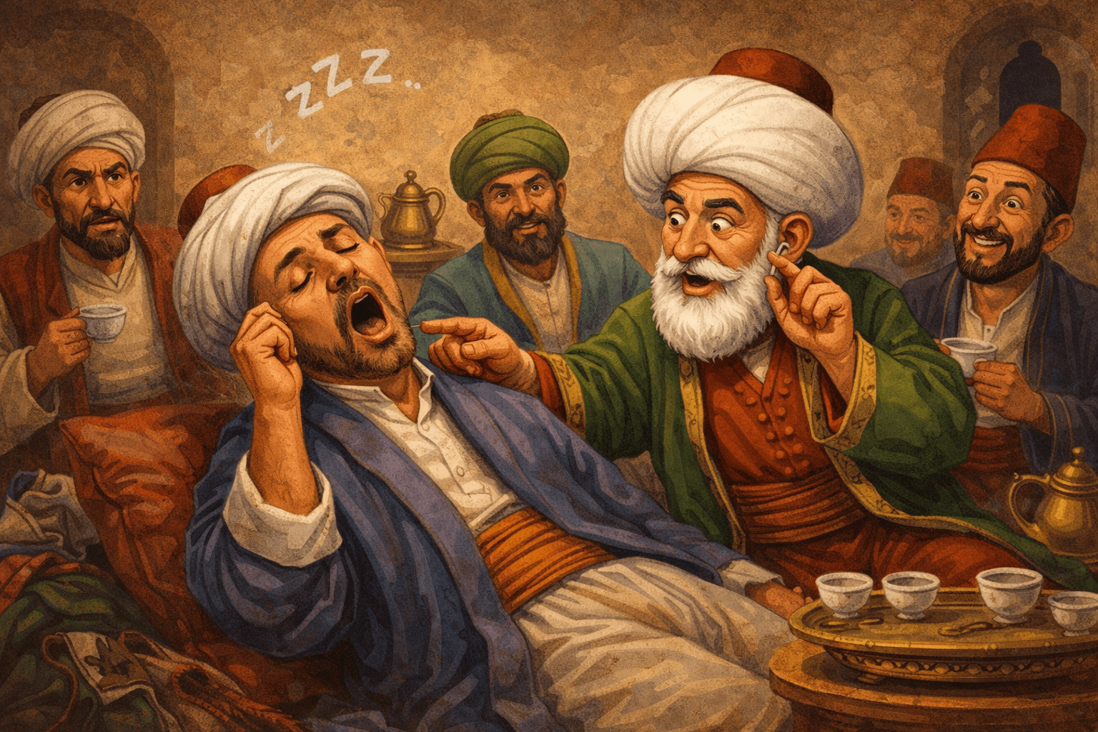 Настрадин Ходжа бил в компания. Един от приятелите му, който седял до него, заспал и силно захъркал. Ходжа го събудил и когато онзи го попитал защо, отговорил: