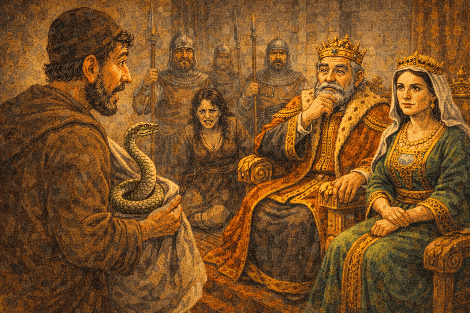 — Ще ти разкажа, царю, ако ми позволиш най-напред да отида в полето и да пусна змията на свобода.
