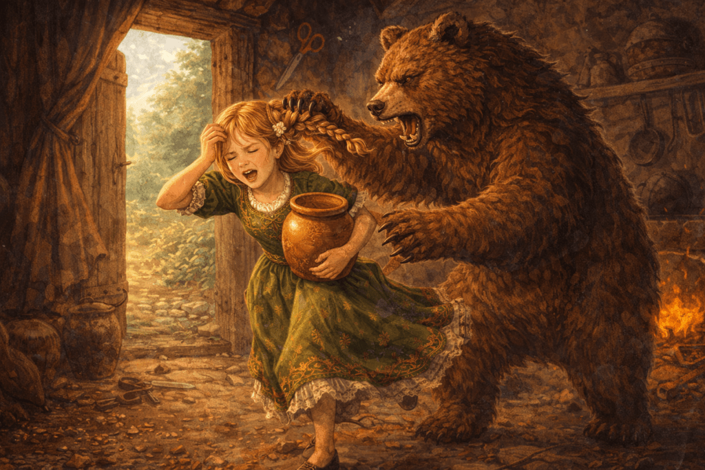 Вън! Вън! Вън! – заблъска я мечката. – Да се махаш от гората ми или ще те разкъсам на парчета!