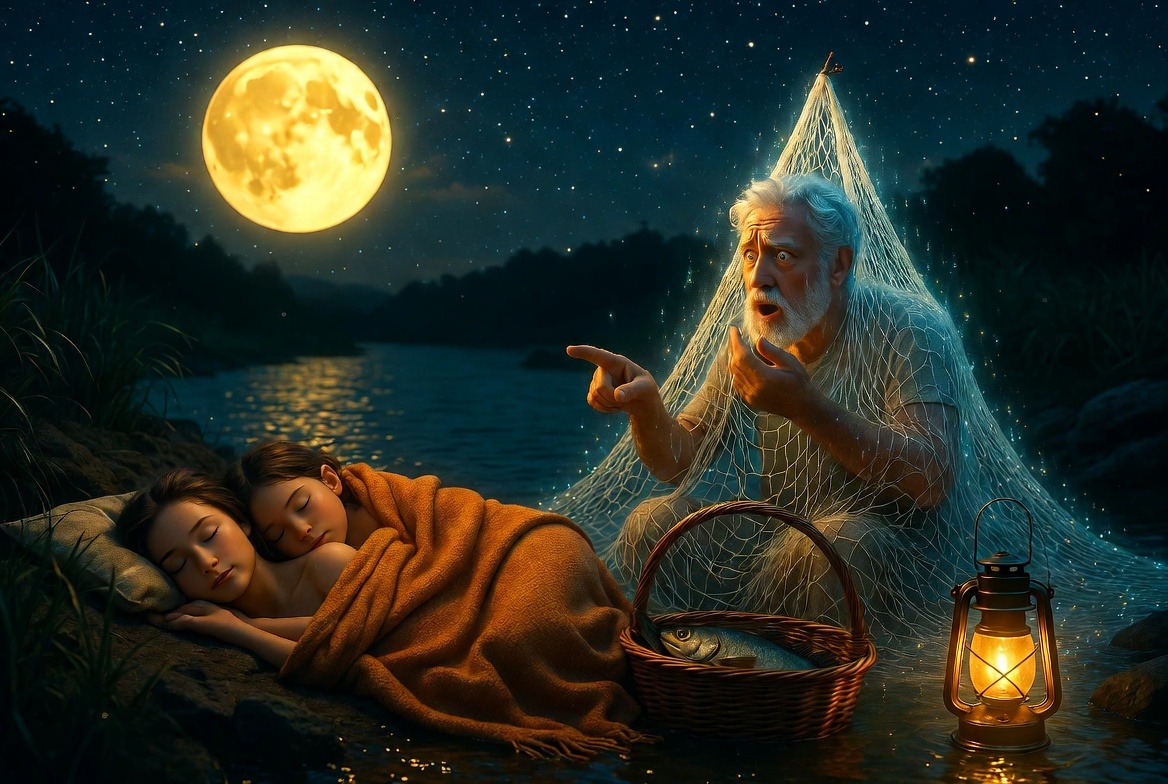 Трима приятели се наговорили да идат на нощен риболов. Единият от тях нарамил голяма рибарска мрежа и не можел да носи повече багаж, а другите двама взели и по едно одеяло, че щом се мръкне, край реката ставало доста хладно.