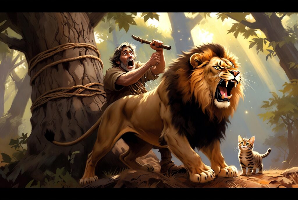 бил на дървото, викнал на лъва: