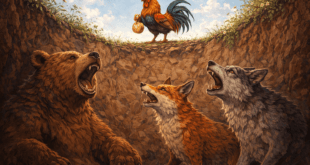 Едно магаре остаряло и напуснало своя господар. По пътя срещнало куче, също избягало от господаря …