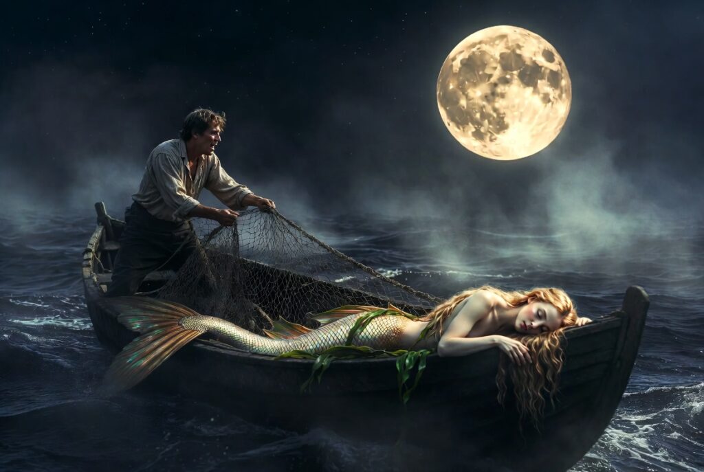 И когато русалката разбра, че няма да може да избяга от него, разплака се и каза: