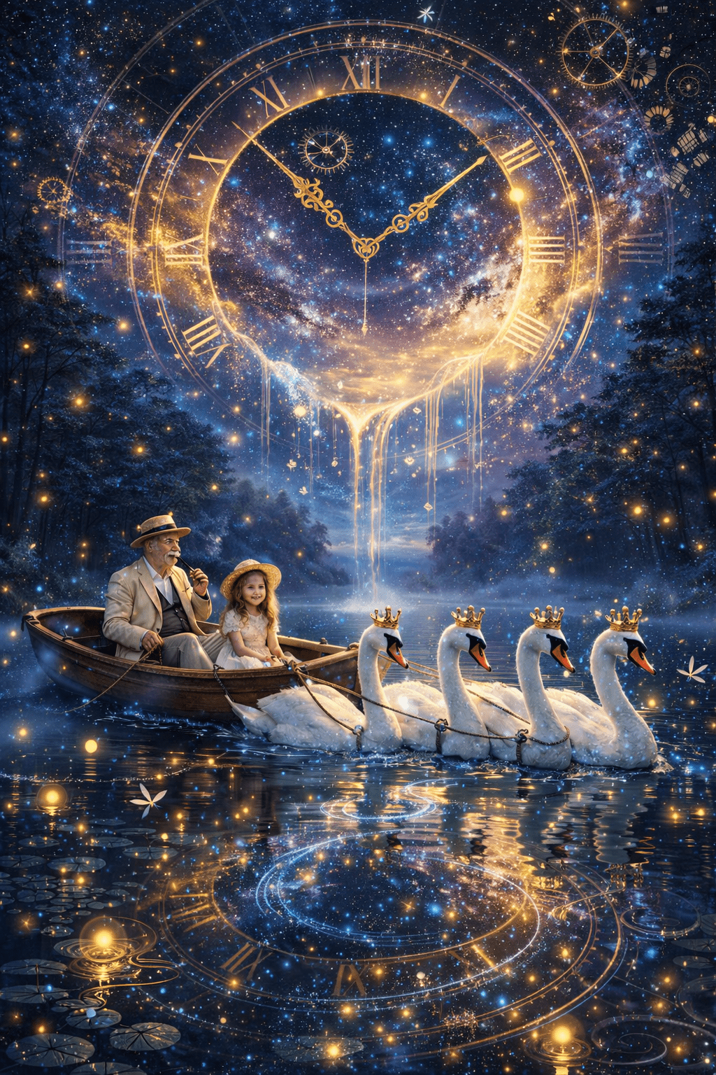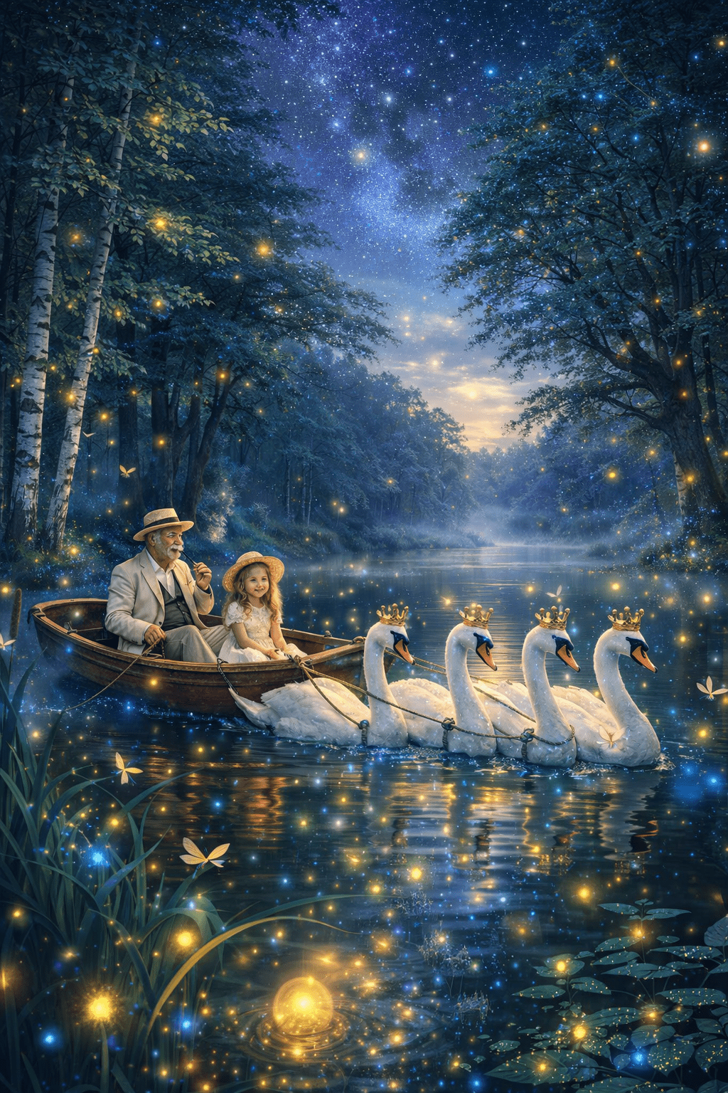 В онази тиха нощ, когато небето бе по-дълбоко от всякога, а звездите сякаш шепнеха помежду си, едно малко момиче пътуваше по езерото на времето.