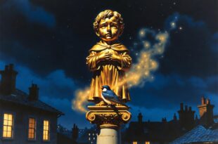 Едно време умът и щастието почнали да спорят. Умът казвал: "Аз съм по-добър". А щастието отговаряло: "Не ти, а аз!" Те вървели из един полски път и се препирали. Ето че щастието видяло един млад овчар, който си пасял овцете, подпрян до едно дърво, и си свирел. – Ето нà, виждаш ли този овчар? Ще го направя най-богатия на света, …