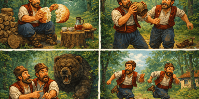 Живели някога мъж и жена. Веднъж мъжът намерил ка улицата едно яйце, занесъл го в къщи и го сложил на прозореца. Когато жена му почнала да пали огън в пещта, той й рекъл: — Жено, намерих на улицата едно яйце и го оставих на прозореца. Иди намери и ти още две яйца, ще ги изпържим и ще се нахраним. Приближила …