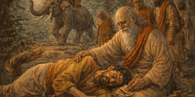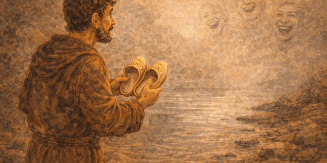 Имало едно време двама братя. Единият бил богат, другият – беден. Богатият нищо не работел, а печелел много. Бедният ловял риба и така се прехранвал. Веднъж богатият вдигнал сватба – сина си женел. Събрали се много гости в дома му. „Ще ида и аз на гости на брат си“ – рекъл си бедният. Взел на заем от съседите кравай и …