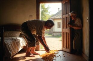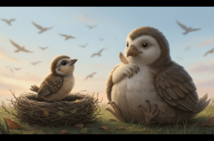 Една сутрин старият воден плъх подаде глава от дупката си. Той имаше лъскави като мъниста очи и щръкнали сиви бакенбарди, а опашката му приличаше на дълго парче черна гума. Малките патенца плуваха из яза и приличаха на куп жълти канарчета, а майка им, която беше чисто бяла и имаше истински червени крака, се мъчеше да ги научи как да стоят …