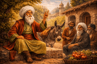 Един човек, който имал градина, засадена с алеи смокини, ябълки и нар, я дал под аренда. Като отишъл там след известно време, той намерил градината напълно запусната, обрасла в тръни. Той извикал хора, за да изсекат тръните, но в този момент сред бодливите храсти забелязал пищно цъфтяща роза, издаваща упоително благоухание. И казал: "Заради тази роза съм готов да оставя …