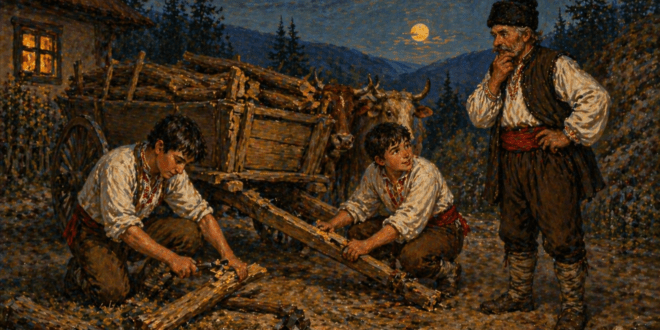 Имало едно време двама братя сиромаси. По-големият брат бил умен, а по-малкият — глупав. Веднъж старата им майка поръчала на по-малкия си син да изведе кравата на пасбището. Закарал глупавият брат кравата в един дълбок дол, а сам той се спрял и се озърнал наоколо. Гледа — по каменистите склонове накацали едва ли не хиляда гарвана. Вързал тогава глупавият момък …
