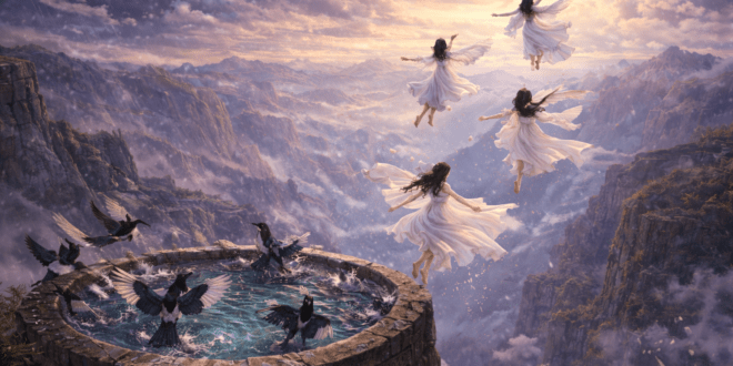 Мандаринът на провинцията Лю се запътил да посрещне задморската птица, която се появила в околностите, и я проводил в парадните покои. По този повод бил заколен вол, овца и прасенце и в чест на задморската птица бил устроен пир, на който прекрасни музиканти свирели музика, съчинена под наблюдението на император Шуен. Но птичката гледала на всичко това разсеяно, била унила …