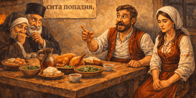 народна Имало един човек – много мързелив. По цели дни лежал под сенките, а децата му гладували и ходелиот къща на къща да просят милостиня. Селяните, като минавали край него, спирали се и започвалида го хокат. Децата ти скитат немили-недраги, целият народ се труди, а ти лежиш. Не те ли е срам?Дигай се и тръгвай на работа!Работа ли е – …