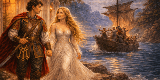 Дъщерята на цар Еет, владетеля на Колхида, се казвала Медея. Тя се влюбила в красивия Язон, качила се тайно на кораба и останала там. Героите започнали да обсъждат какво да направят, че да откраднат Златното руно от свещения дъб. Попитали Медея какви трудности ги очакват. Тя им разказала всичко. Недалеч от дома на Еет се издигала в кръг висока стена …