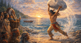 От тази страна на острова, в подводна пещера, всякога пълна с омари, живееше великият Каи-але-але, цар на акулите. Рибарите много се бояха от Каи-але-але и неговите поданици — акули. Никой не се ос¬меляваше да се гмурне във водата на тази пещера и да лови в нея омари. На този остров живееше едно момченце на име Пуня. Неговият баща беше разкъсан …