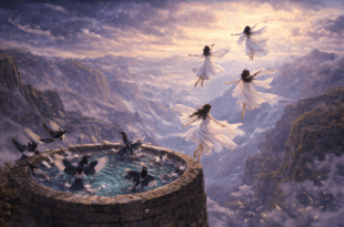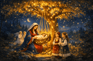 Дълго бродил Стоян из гъстите зелени гори, газил треви до колени, но дребна лова не уловил. Уморил се ловецът и седнал под вековен дъб да си почине, заедно с двата бащини бели соколи. След краткия дъждец слънцето като стъклена топка се провирало през паяжинките и ги правело сребърни с нанизани капчици бисер. Зареял морен поглед към сивите облаци, Стоян съгледал …
