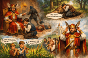 Похвалил се лъвът пред баба Мецана: — Знаеш ли, Мецано, юнак като мене? — Зная, Лъвчо, зная!—рекла баба Меда. — Погледни как куцам! От човек си патя. От него по-силен на земята няма! — Що думаш? Човек ли? По-силен от мене? — запънал се лъвът.— Де е да го видя? — Зад хълма, в гората! — отвърнала Меца. Подпътил се …