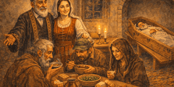 Един ден малкият Клаудио си играел във входа на къщата и по улицата минал хубав старец със златни очила, който вървял приведен, като се подпирал на бастун. Тъкмо пред входа на къщата бастунът му паднал. Клаудио с готовност го вдигнал, подал го на стареца, но той се усмихнал и казал: — Благодаря, не ми е нужен. Прекрасно мога да вървя …