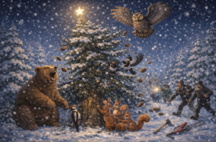 Една нощ Настрадин Ходжа видял на лунна светлина че в градината му стои някакъв внушителен човек, величествено протегнал ръце. Той събудил жена си и казал: "Донеси ми по-скоро лъка и стрелите!" Той бързо изопнал тетивата и призовавайки името Божие, пуснал стрелата. Стрелата попаднала точно В корема. "Да, с нас не бива да се шегуват! – гордо казал Ходжа. – Сега …