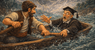 Докато прехвърлял един учен педант през бурна река, рибарят казал нещо, което се сторило на онзи граматически неправилно.– Нима ти никога не си учил граматика? – попитал ученият.