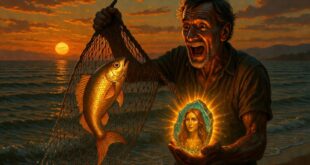 Всяка вечер младият рибар влизаше навътре в морето и хвърляше мрежите си във водата. Когато вятърът духаше от брега, той не улавяше нищо или съвсем малко, защото това беше лош, чернокрил вятър, и яростни вълни се надигаха насреща му. Но когато вятърът духаше към брега, рибата излизаше от дълбините и се заплиташе в дупките на мрежата му. Той я занасяше …