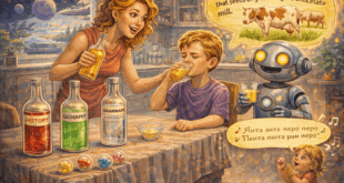 На планетата Бу няма книги. Науката се продава и се консумира в бутилки. Историята е една червена течност, която прилича на сок от нар. Географията — течност, зелена като мента, граматиката е безцветна и има вкус на минерална вода. Няма училища, учи се в къщи. Всяка сутрин децата, според възрастта, трябва да гаврътнат чаша история, няколко лъжици аритметика и т.н.