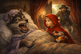 Имало едно време едно момиченце, което се наричало Жълтата шапчица. – Не, Червената! – А, да. Червената шапчица. Майка й я извикала и й казала: Слушай, Зелена шапчице… – Ама не, Червена! – А, да. Червена. Иди при леля Диомира да й занесеш тази обелка от картоф. – Не: върви при баба си да й занесеш тази пшеничена питка. – …