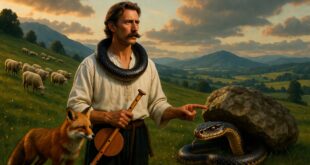 Един овчар, като пасял овците си, чул, че нещо се викало. Поразгледал насам-натам, никого не видял и пак седнал да свири с кавала си. Тъкмо засвирил, чул някакъв писък. Станал и тръгнал по посока на гласа. Като стигнал до един голям камък, видял отдолу една змия: тя била притисната под камъка и не могла да се измъкне. Змията замолила овчаря …