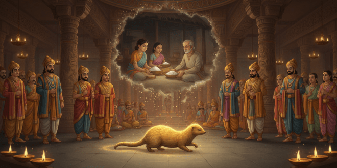 Живял някога един владетел, който убивал закупчиците на краденото, а крадците пускал на свобода. Всички се жалвали, че това е несправедливо. Тогава владетелят събрал народа на площада, докарал там плъхове и сложил пред тях храна. Плъховете вземали храната и я отнасяли в дупките си. На следващия ден владетелят отново събрал народа на площада, довел плъховете, сложил храна пред тях, а …