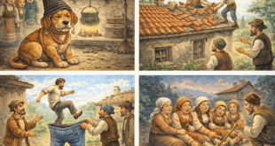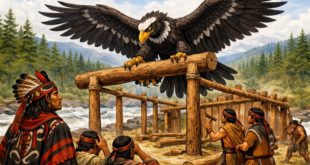 Един вожд на квакиутлите и неколцина от хората му решили да построят дървена колиба на брега на бързотечна река. За пръв път се опитвали да строят колиба. Не им идвало на ум как да издигнат една дълга, тежка греда, за да подпрат покрива. Всеки път, когато закрепвали единия край на гредата върху висок стълб, тя се изтъркулвала още преди да …