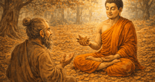 Веднъж, когато Буда седял под едно дърво, при него дошъл велик философ. Тогава Буда бил вече много стар и след няколко месеца трябВало да си отиде.Великият философ попитал Буда: „Казахте ли вече всичко, което знаете?“Буда взел В ръка няколко сухи листа и попитал философа: „Как мислите, колко листа има в ръката ми? Повече ли са от сухите листа в тази гора?“