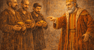 Веднъж човек, който отивал в друга страна, призовал робите си и им поверил имението си. На един дал пет таланта, на друг два, на трети един – на всеки според силата му и тутакси тръгнал.