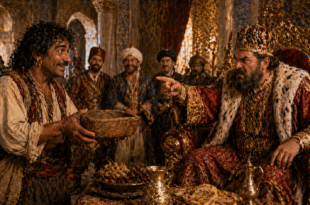 Един богобоязлив човек карал с магарета храна на пазара. Покрай него минавал бедняк, който умирал от глад, протегнал ръка и помолил за парче хляб. Човекът в стремежа си да изпълни молбата на бедняка отворил един сандък и видял, че хлябът е изсъхнал. Затова потърсил друго и намерил кифла. Но изведнъж си спомнил, че на дъното на сандъка има пирожки. Накрая …